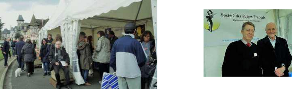 Après un déjeuner convivial au restaurant de Sweet Home, les responsables des associations allèrent prendre possession des barnums installés la veille par les services de la ville, puis les auteurs le souhaitant purent y présenter leurs livres, y compris dans le petit pavillon de la place ouvert pour la circonstance, à un public ravi de cet exceptionnelle et étonnante manifestation de poètes venue investir la place du Grand Hôtel, sous le regard complice de la statue grandeur nature de Marcel Proust.